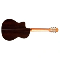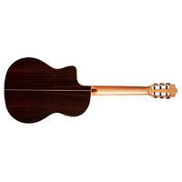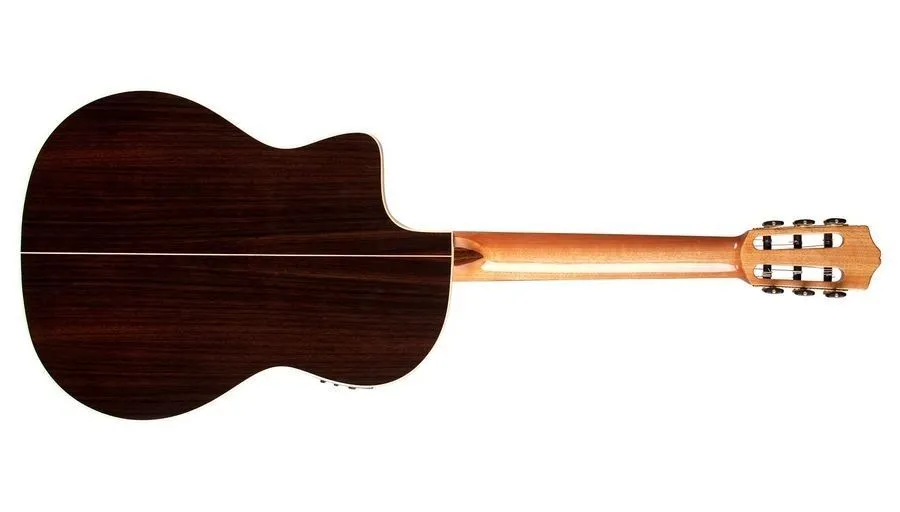 Built with a solid European spruce top, Indian rosewood back and sides, soft cutaway and Fishman Presys Blend preamp, the GK Studio Negra is the ultimate gigging instrument and a Córdoba best seller. Made for the stage, the GK Studio Negra is constructed with a slightly thinner body depth, neck, and nut width than a traditional Spanish guitar. The neck is designed to have little or no relief, offering low action for ease of comfort and quick playability. Flamenco players choose this model for a bassier and more robust tone in contrast to the bright, snappy sound of ‘blanca’ flamenco guitars. However, any guitarist looking for a new tone will feel right at home. Like every Córdoba guitar, this model has a two-way truss rod built into the neck. Other premium features include a high gloss finish, clear flamenco-style tap plate, Savarez strings and a padded deluxe gig bag.
