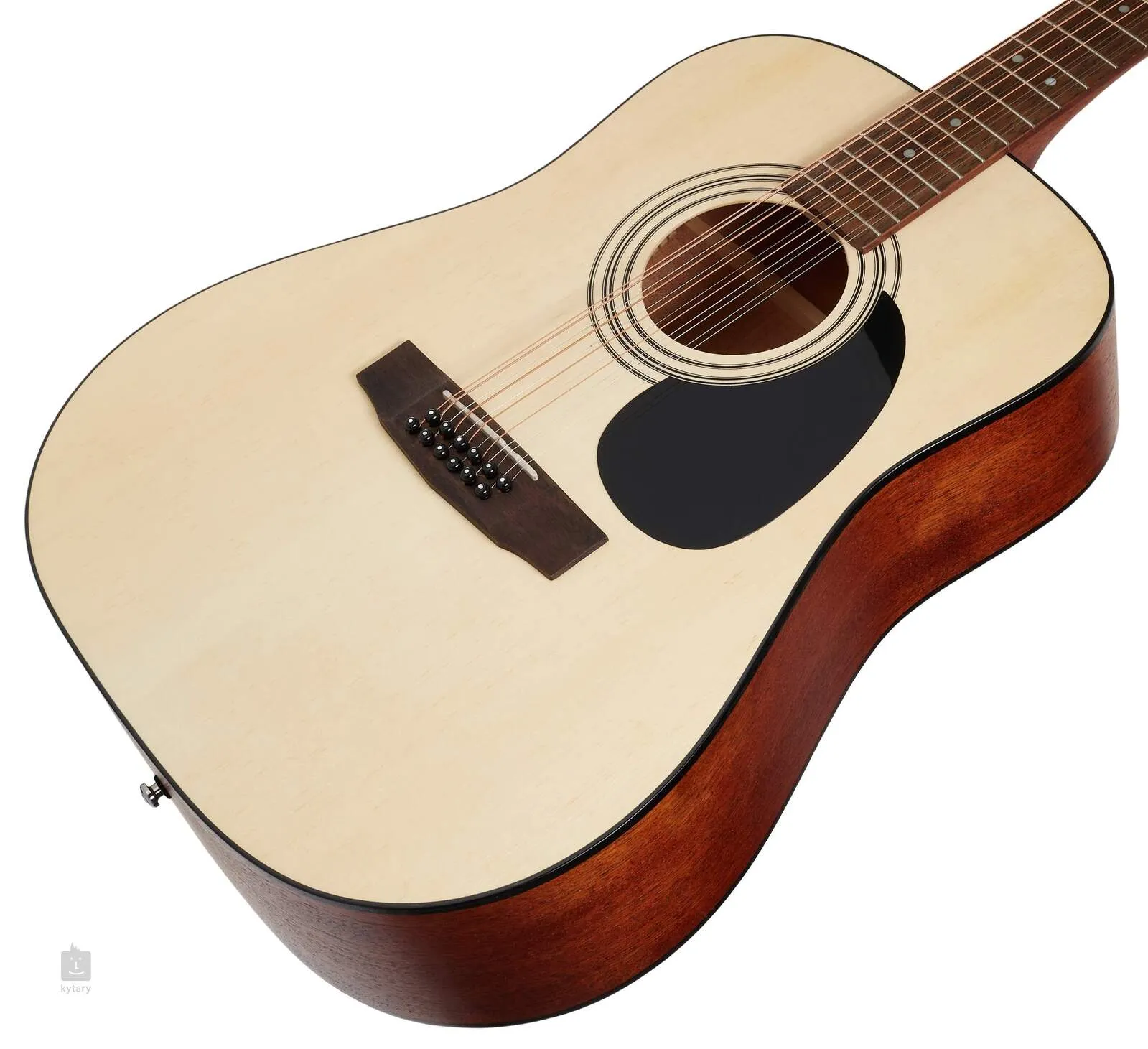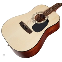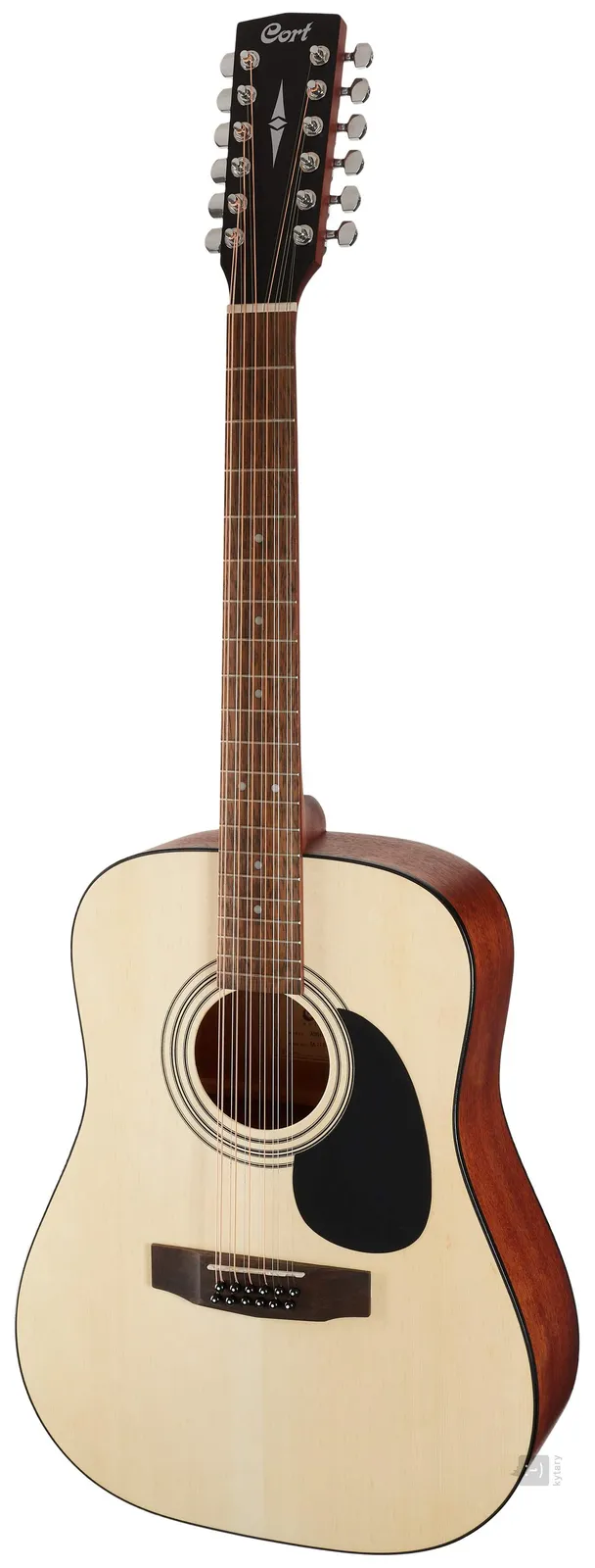 The Cort AD 810-12 is a 12-string dreadnought acoustic guitar. The instrument's layered body is composed of a spruce soundboard and mahogany back and sides. This proven combination of woods gives the instrument a balanced sound with the necessary amount of tonal clarity and warmth. Glued to the mahogany neck is a fingerboard made of exotic merbau wood fitted with twenty frets, with positioning dots to help you navigate its surface.