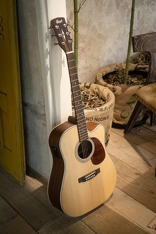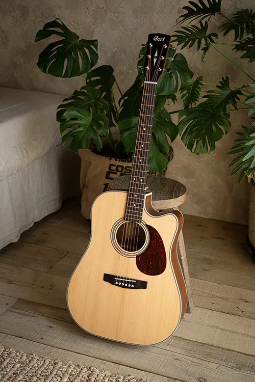 The MR Series represents Cort’s mission to provide the highest quality traditional instruments with superb workmanship and modern features at an unbeatable value. MR500E is a solid spruce top, mahogany back and sides, Ovangkol fingerboard. The classic dreadnaught body has a Venetian cutaway for easy high fret access and is equipped with Cort CE304T electronics to deliver the MR’s natural acoustic sound to an amplification system for both live and recording applications.
