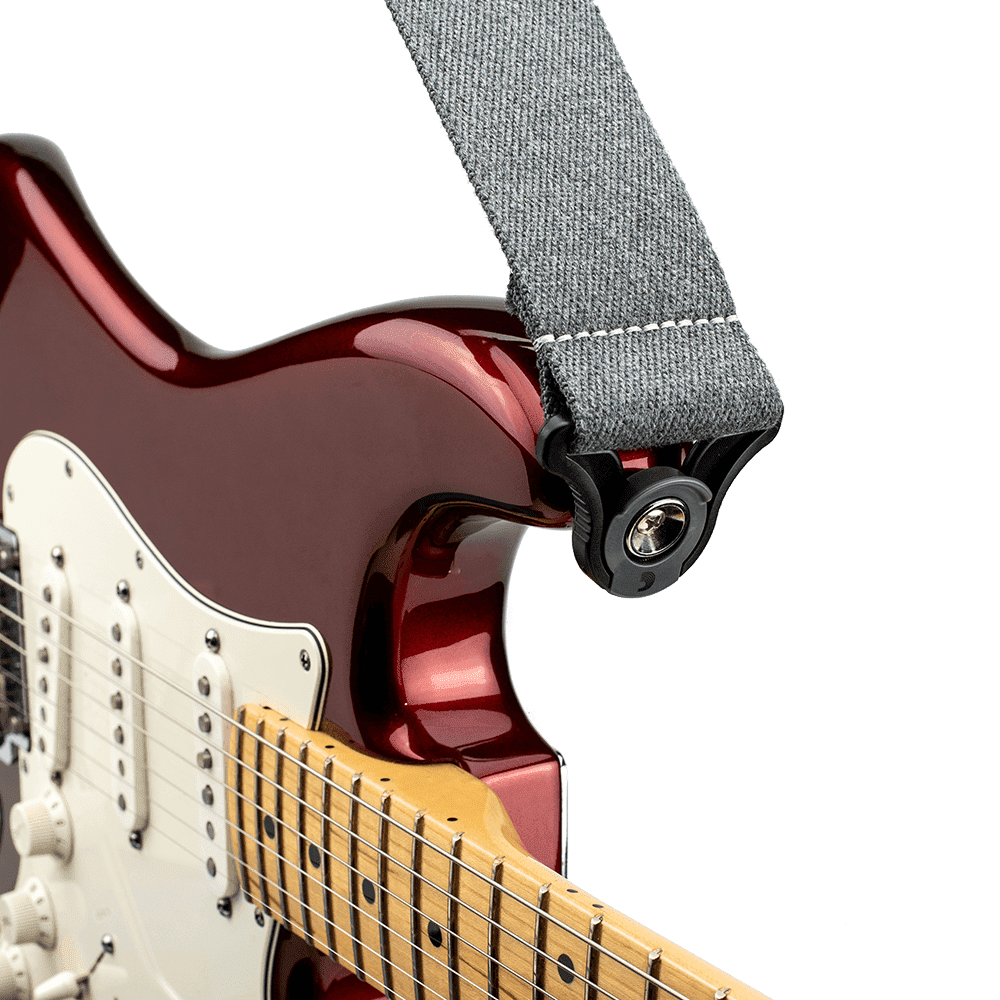The D’Addario Auto Lock Guitar Strap is the simplest integrated strap locking system for your performance. Simply slide the strap end over the guitar strap buttons and you are locked in - it’s that easy. The grey latch is spring-loaded so it automatically clamps down on the strap button and will not release until you want it to. Just push up on the grey latch, slide off the end, and the strap is removed. Works with most strap buttons on the market. The Auto Lock Guitar Strap was designed in partnership with Ned Steinberger. These durable straps are sure to accent any guitar and are adjustable from 30" to 55" long.