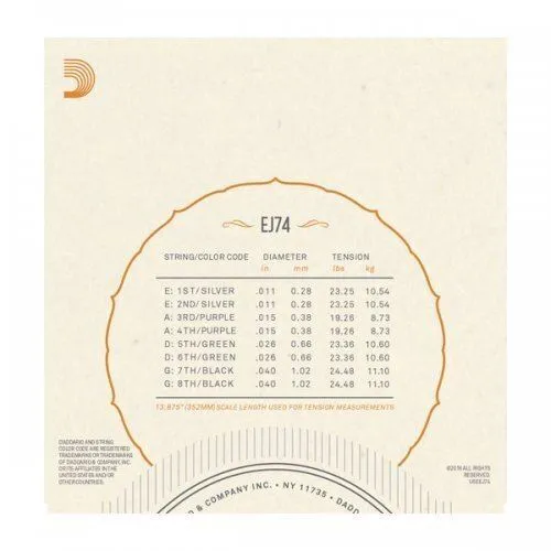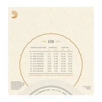 EJ74, D'Addario's best selling mandolin set, is the standard established by David Grisman and Ricky Skaggs. Warm and bright phosphor bronze tone with the optimal blend of tight playing tension and strong projection. Loopend construction for universal fit.