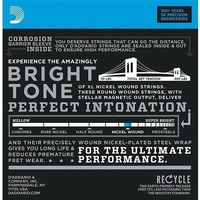 EXL140-8 combines one of D'Addario's most popular hybrid sets, EXL140, two additional low strings to create a set optimized for 8-string electric guitars. This combination delivers powerful low end for heavy chording and flexible plain steel strings for bending. XL Nickel Wound, D'Addario's most popular electric guitar strings, are precision wound with nickelplated steel onto a carefully drawn, hexagonally shaped, high carbon steel core. The result, strings with long lasting, distinctive bright tone and excellent intonation, is ideal for the widest variety of guitars and musical styles.