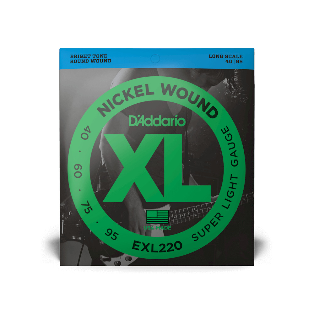 XL Nickel are the industry standard in electric bass strings. With their clear fundamentals, booming tight lows, and reliable D’Addario construction, they’re trusted by players everywhere to handle any performance. XL Nickel bass strings are made with a high carbon steel core and wound with nickel-plated steel wrap wire, for consistently bright tone and smooth playability, great for a wide variety of bass styles. These 40-95 Super Light strings have a bright attack and very light tension, making them easier to play.