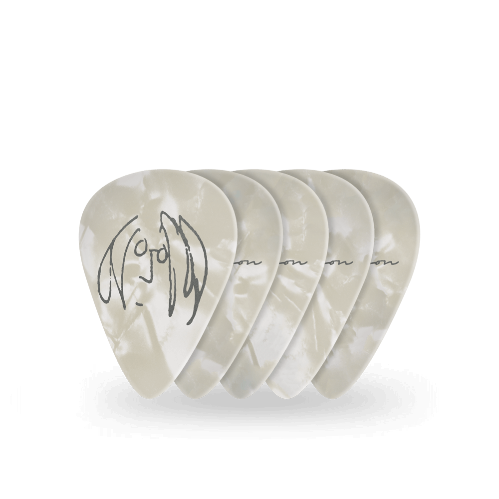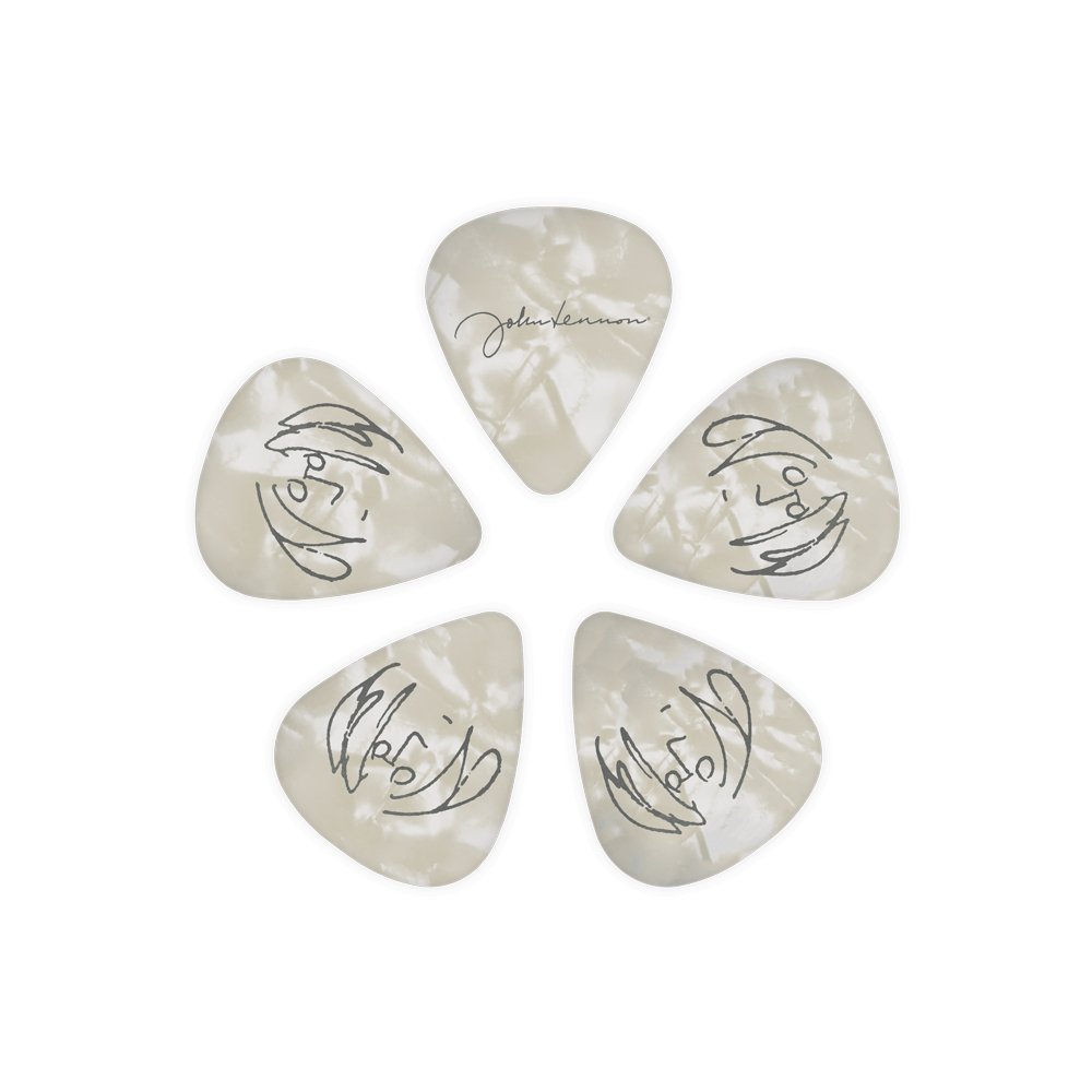 Strum along with a legend using these John Lennon signature picks, featuring his classic cartoon self-portrait. These picks commemorate the beginning of John’s iconic solo career. Pack includes ten picks so you have enough to play, preserve or share with fellow fans.