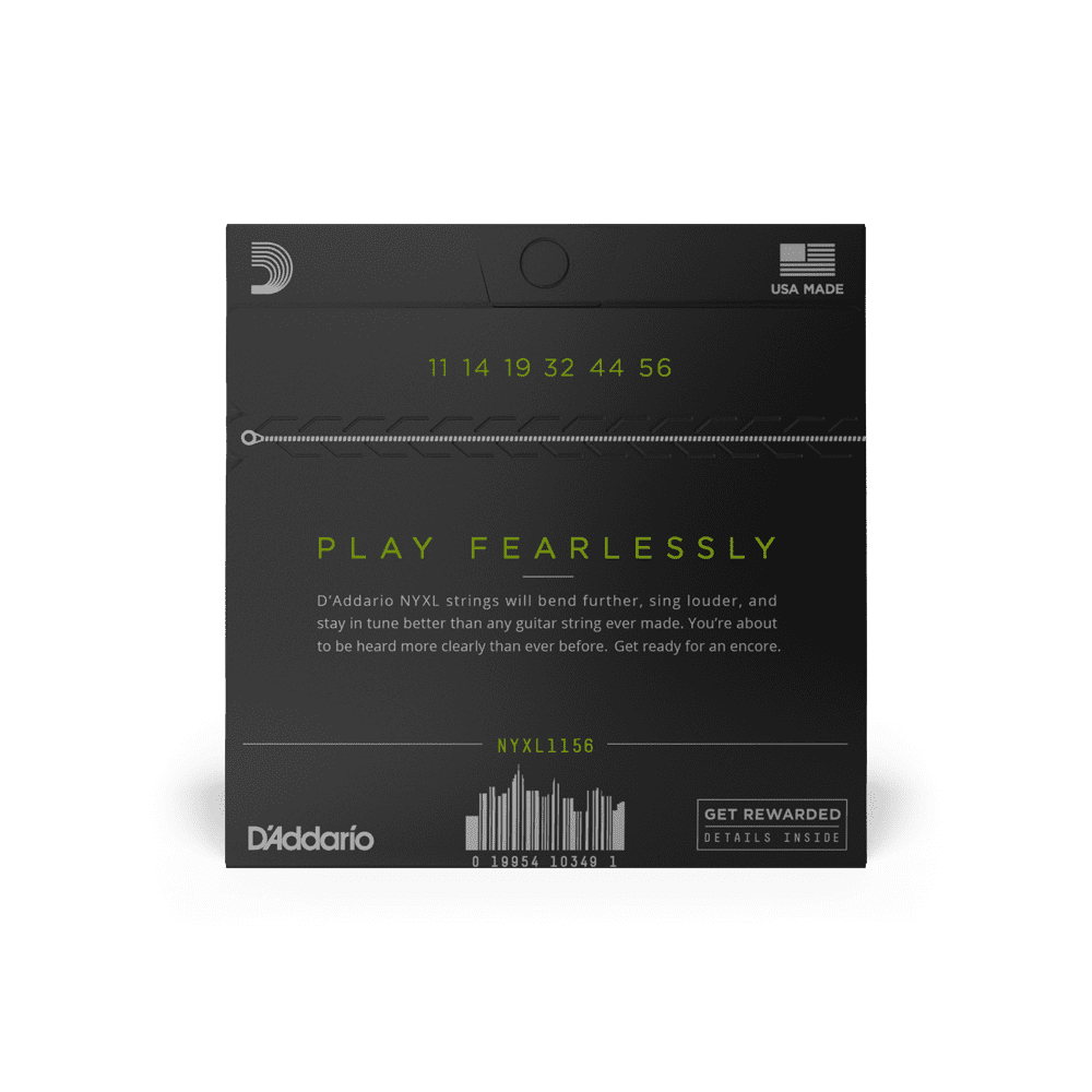 NYXL1156 is optimized for tuning guitars down a whole step to D or for players who prefer a heavier string setup. The high carbon steel used in NYXL strings offers higher break strength, enhanced tuning stability, and accentuated mid-range frequency response.