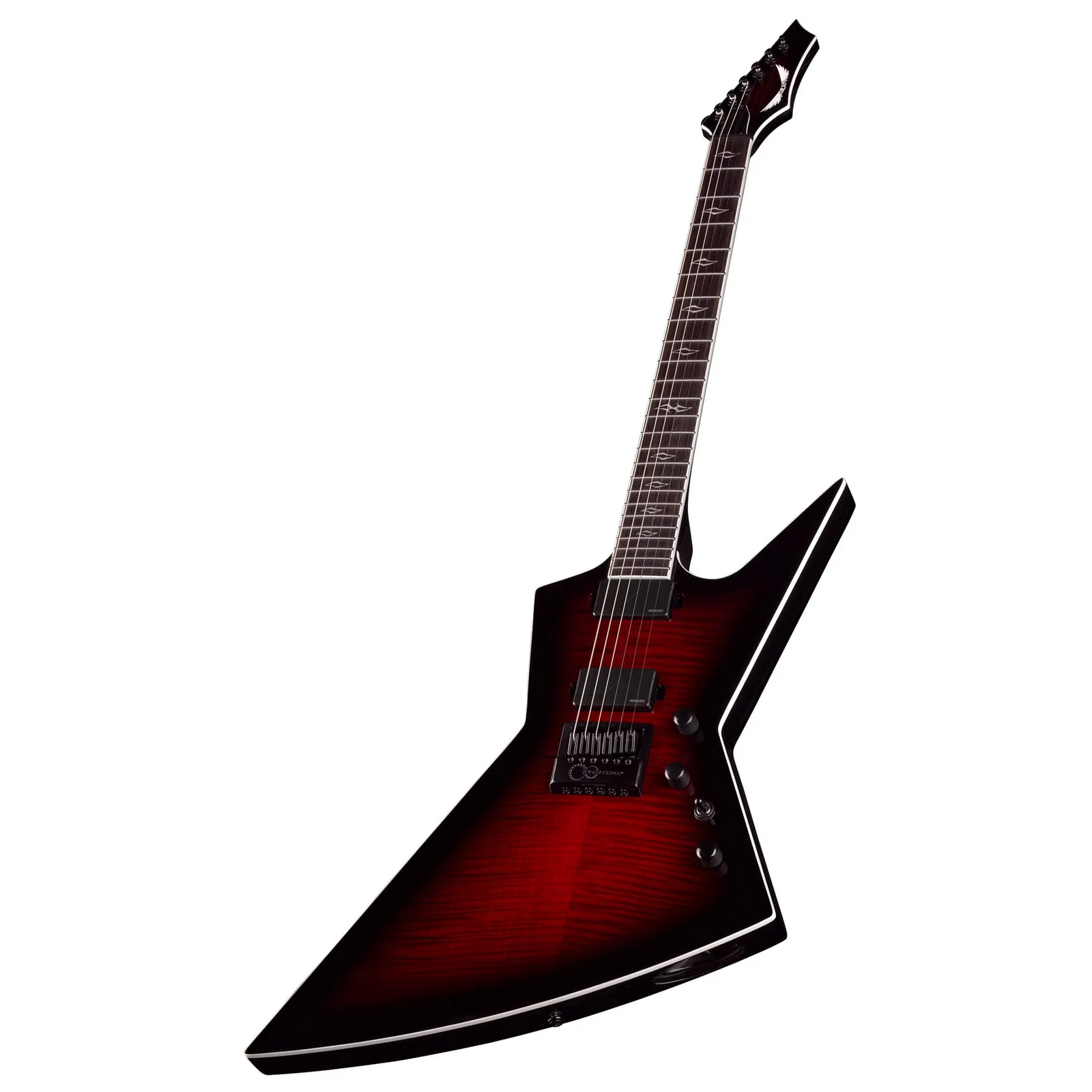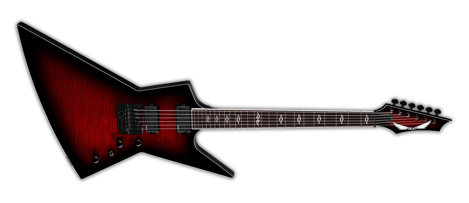 Returning by popular demand, Dean presents the redesigned Zero! This stunning shape brings performance, aggression and class all together with an eastern mahogany body, flame maple top with a black cherry burst finish, a 3pc maple set through neck with 24 stainless steel frets on an ebony fingerboard, plus large glow in the dark side markers! To take it to the next level this model is loaded with dual Fishman Fluence Modern pickups and an Evertune bridge system for the ultimate in tuning stability on the stage and/ or the studio.