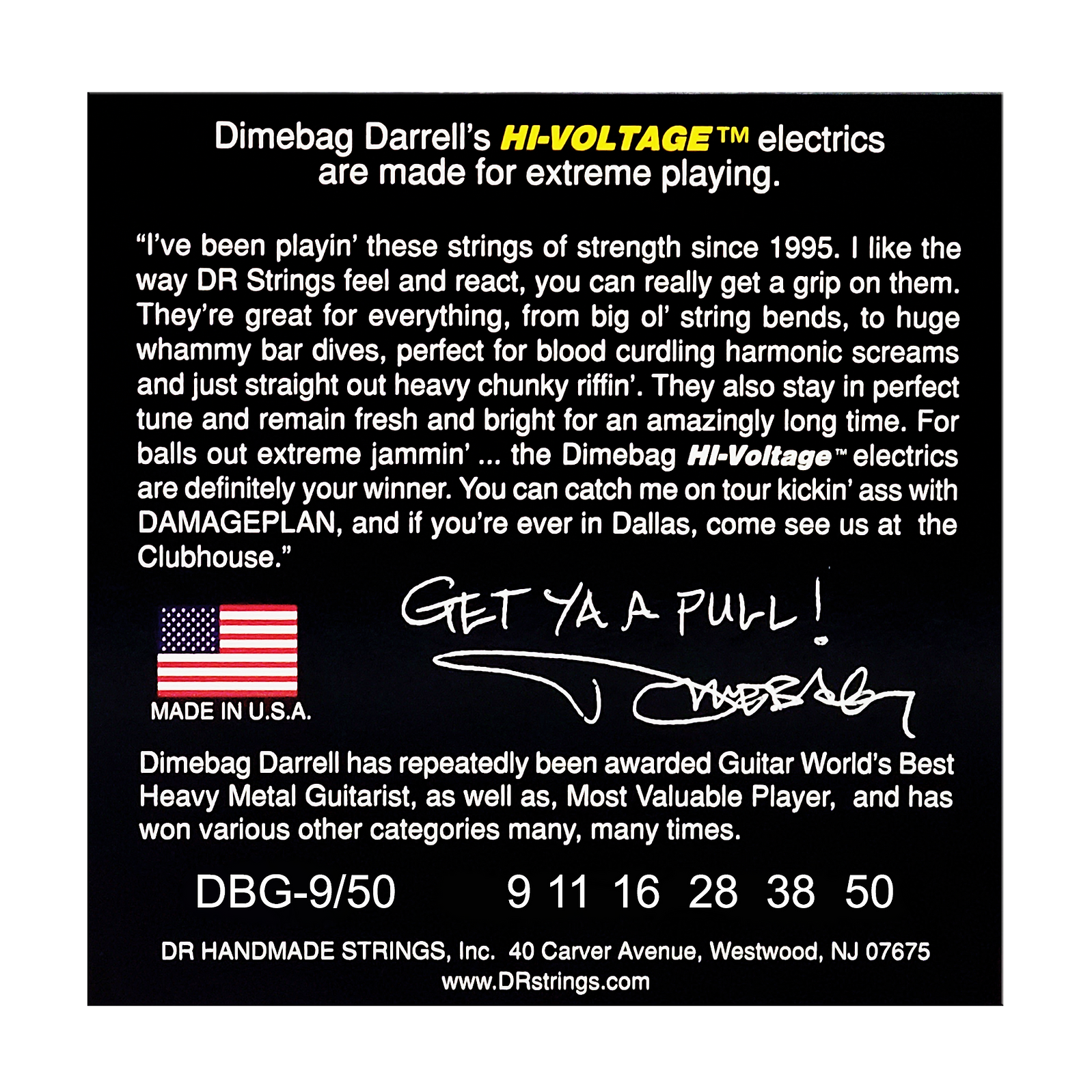 DR HI-VOLTAGE DIMEBAG - Nickel Plated Electric Strings - Light to Heavy 9-50