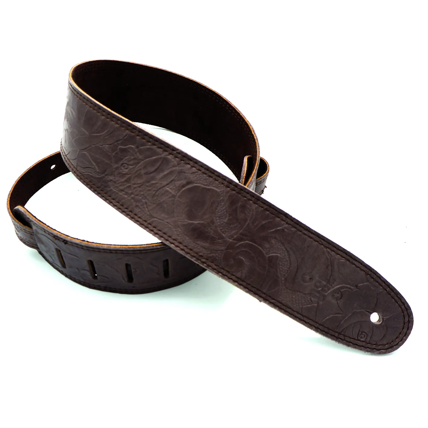 DSL FJ25-BROWN 2.5 Inch Flower Embossed Guitar Strap - Brown