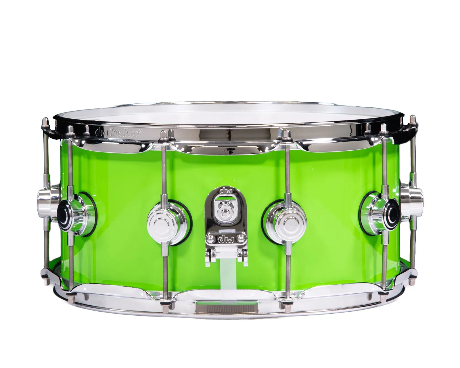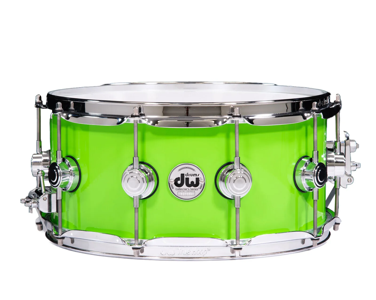 DW Collectors Series 6.5x14 Brass Snare - Neon Green with Chrome