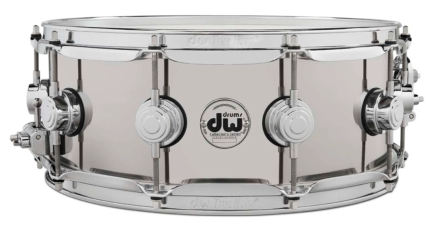 This DW Collector's Series' Stainless Steel snare drum offers a lighter weight rolled shell.