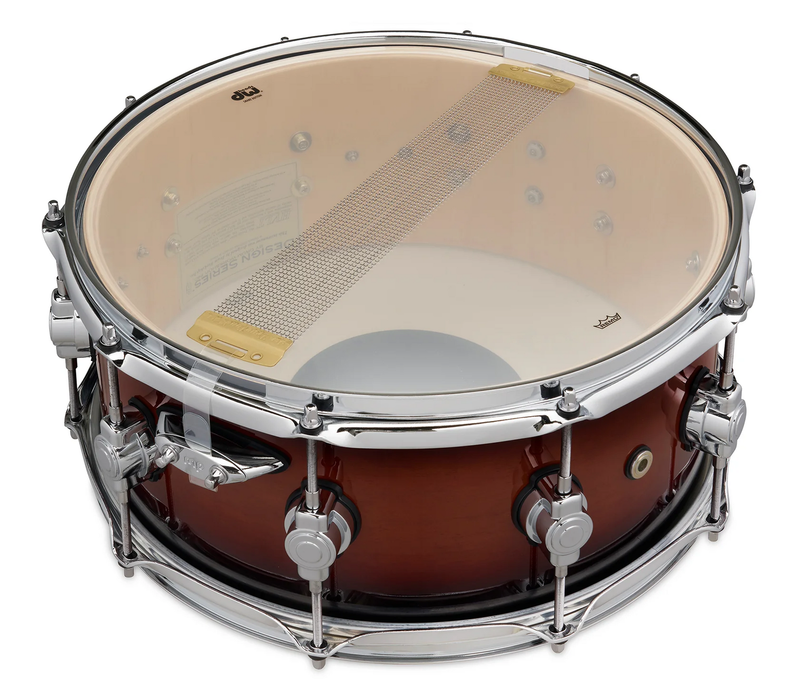 Design Series 6x14 inch Snare, Tobacco Burst All-maple DW Design Series Drums deliver a full, resonate tonality that's perfectly suited for a wide variety of musical applications. Design Series Snare Drums feature HVT 10-Ply North American Maple Shells, Mini Turret Lugs, True-Pitch Tuning, MAG throw-off, and True-Tone snare wires. Drum Workshop's Design Series drums are DW through and through. *