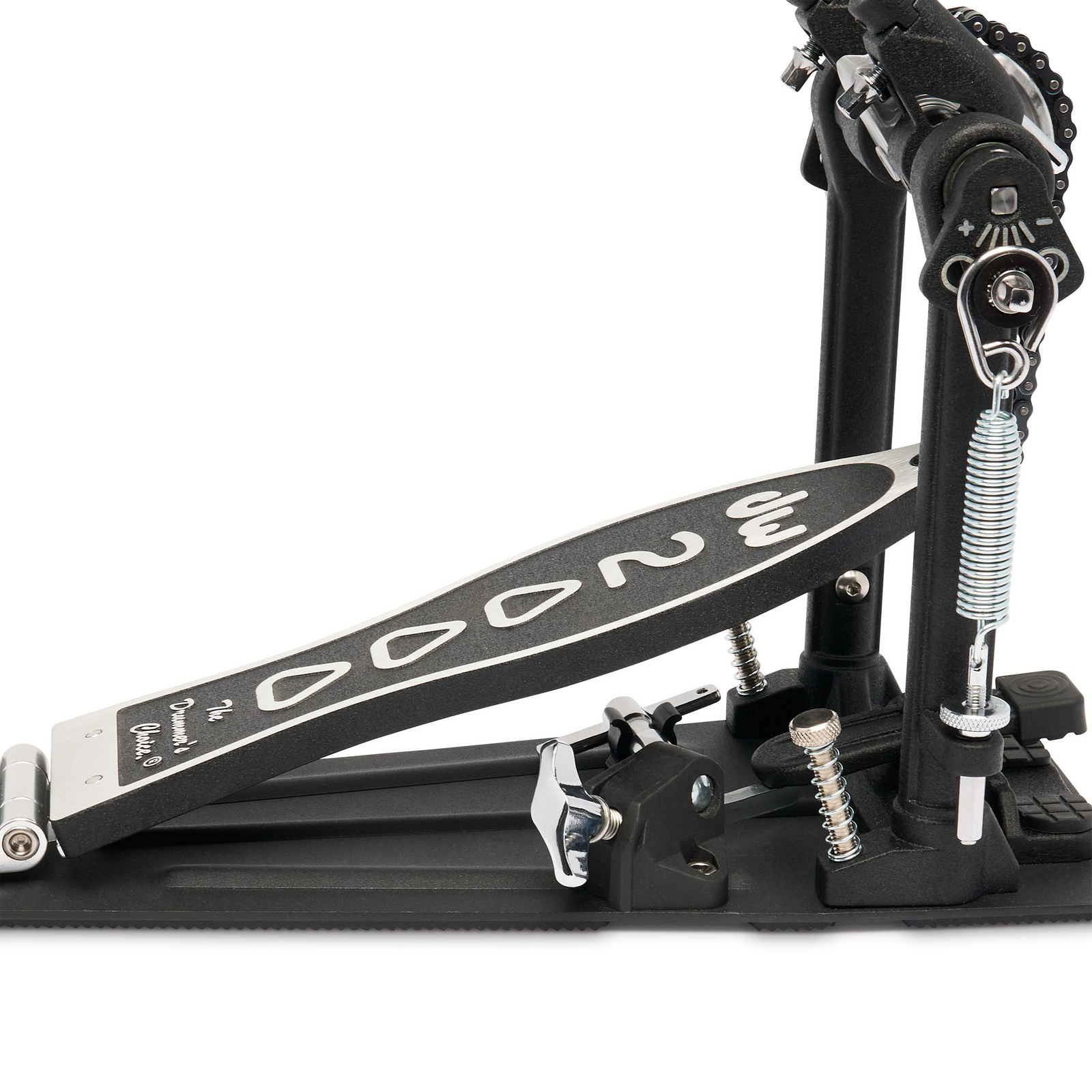 For over half a century, DW has been contributing to the world of hardware innovation. Every product launch, including the 2000 Series, is a step forward in this continuous journey of improvement and innovation. The 2000 Series pedal provides innovative features and adaptable player functionality, making it a savvy, flexible choice for drummers at every stage of their journey. Experience an expanded range of features with the 2000 Series pedal like never before. This robust, all-metal, single-chain pedal in the 2000 Series has been enhanced with a responsive Accelerator' cam, adjustable footboard angle, and a refined Footboard InterLock Hinge System. The steel base plate now features an anti-skid rubber mat, ensuring superior stability. DW: The Drummer's Choice.