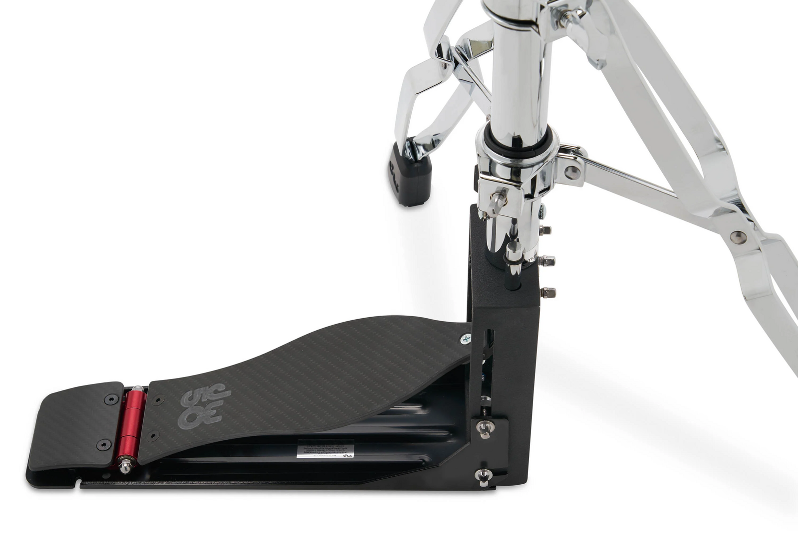 A limited-edition 2-leg hi-hat stand with a DW50 logo on a lightweight carbon fiber footboard and heelplate.
