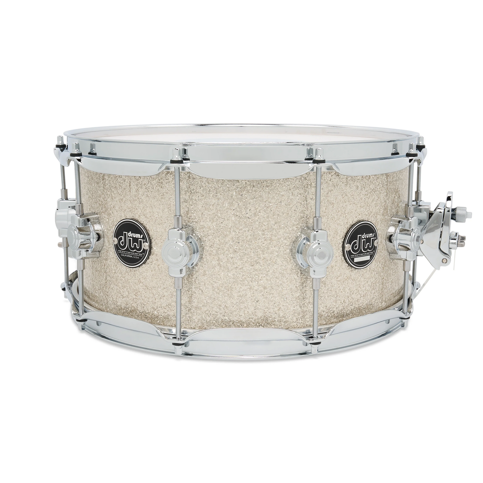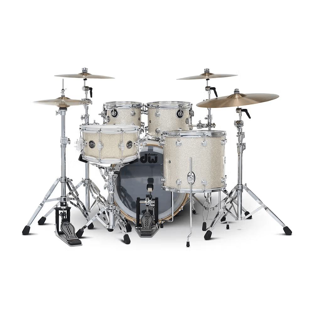 Toms and bass drum are built from 8 plies of Hard Rock Maple with 45-degree/60-degree back-cut bearing edges, while snares feature 10 plies with a 45-degree edge for added cut and projection. Performance Series drums share many hardware details with the Collectors Series, including Suspended Tom Mounts (STM), quarter-sized turret lugs, and triple-flange graduated counter hoops. Bass drums come with matching maple hoops and low-mass claw hooks, while all drums include DWs True-Pitch tension rods for precise tuning.