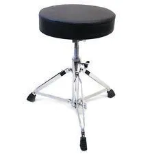 Double braced, height adjustable drum throne. The threaded shaft not only makes for super easy and fast height adjustment but also makes it impossible for the height to slip down as is common with cheap drum thrones that just use a basic memory lock system.