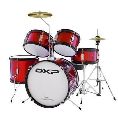 The DXP Junior 5 piece drum kit is the coolest way for a young child to get started. This complete drum kit has everything to get started and features quality fittings and hardware to stand up to even the most enthusiastic young player. Kit comes with a 16"x11" Bass Drum (4 double lugs) 12"x10" Floor Tom (4 double lugs) 10"x6" Tom (4 double lugs) 8"x6" tom (4 double lugs) 8"x6" Snare drum (4 double lugs) tom holder, cymbal holder, 10" cymbal on holder, 8" hi hat cymbals on stand, drum stool, snare stand, bass drum pedal and drumsticks.
