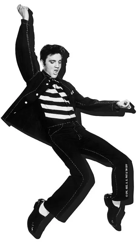 Elvis rocks the jailhouse. up on his toes, swiveling his hips and singing