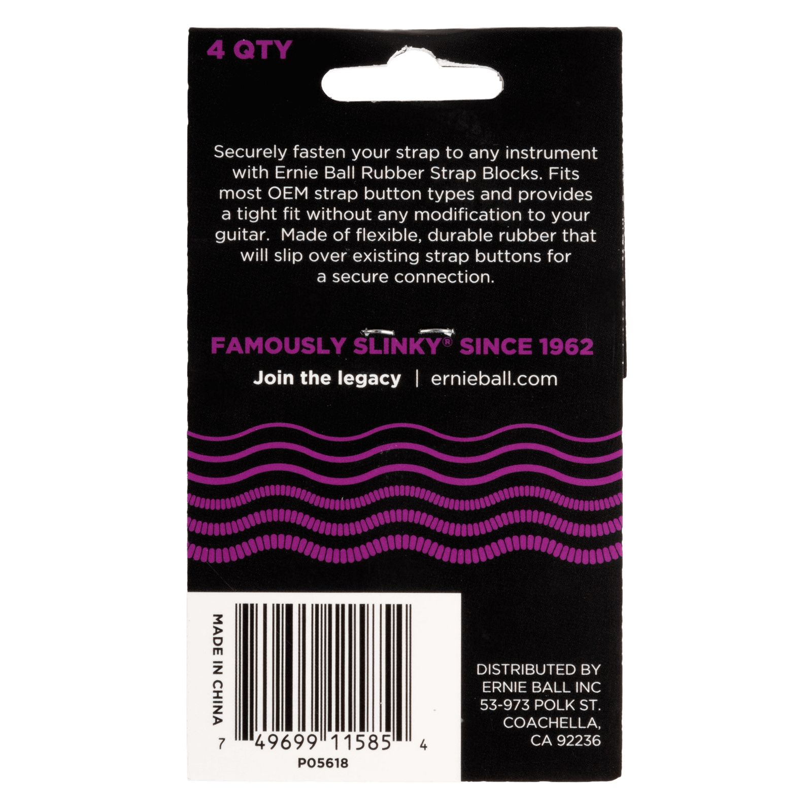 Securely fasten your strap to any instrument with Ernie Ball rubber strap blocks. Fits most strap button types and provides a tight fit without any modification to your guitar. Made of flexible, durable rubber that will slip over existing strap buttons for a secure connection.