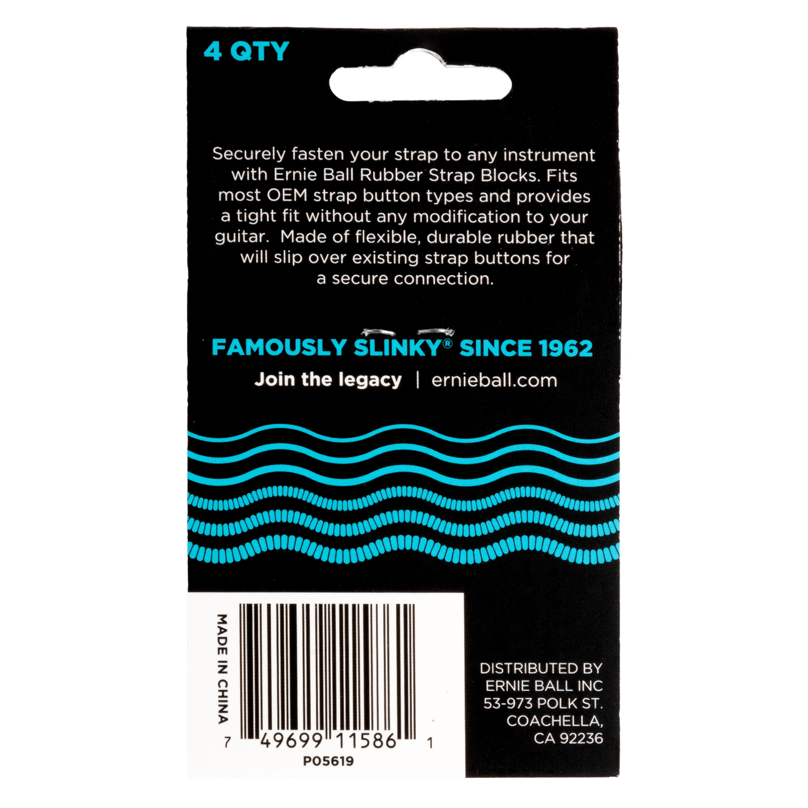 Securely fasten your strap to any instrument with Ernie Ball rubber strap blocks. Fits most strap button types and provides a tight fit without any modification to your guitar. Made of flexible, durable rubber that will slip over existing strap buttons for a secure connection.