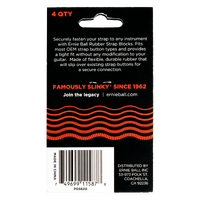 Securely fasten your strap to any instrument with Ernie Ball rubber strap blocks. Fits most strap button types and provides a tight fit without any modification to your guitar. Made of flexible, durable rubber that will slip over existing strap buttons for a secure connection.