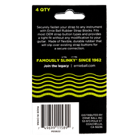 Securely fasten your strap to any instrument with Ernie Ball rubber strap blocks. Fits most strap button types and provides a tight fit without any modification to your guitar. Made of flexible, durable rubber that will slip over existing strap buttons for a secure connection.
