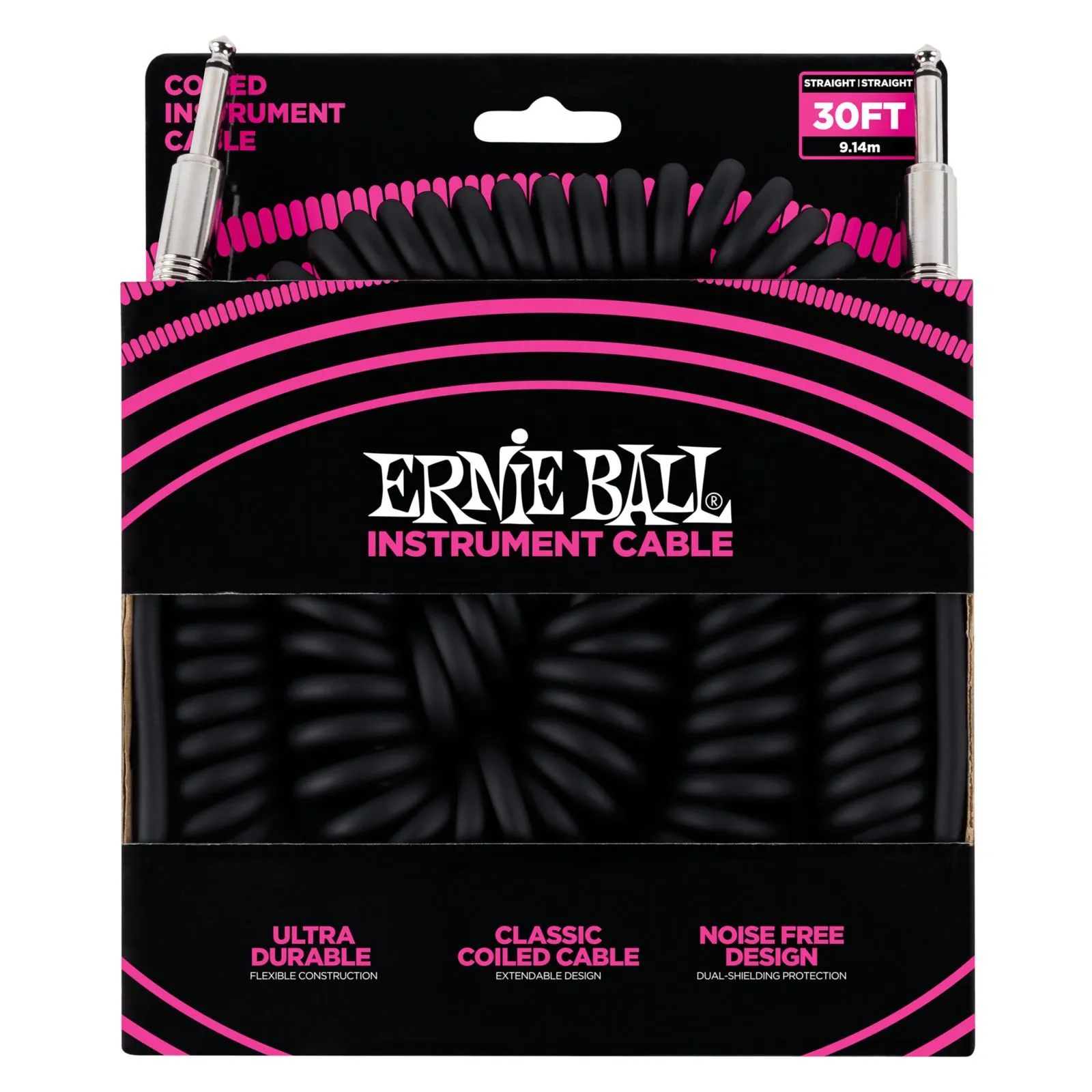 Ernie Ball E6044 30' Coiled Straight/Straight Instrument Cable - Black