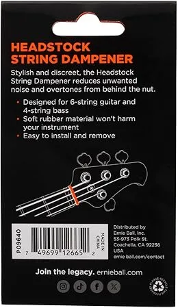 The Ernie Ball String Dampener Headstock is a professional string dampener/muting accessory that every studio, session player, and tapping aficionado should have. Small, stylish, and discreet, it reduces unwanted noise and overtones from behind the nut during recording, live performance, or any situation that requires diminishing unwanted string noise or ringing.