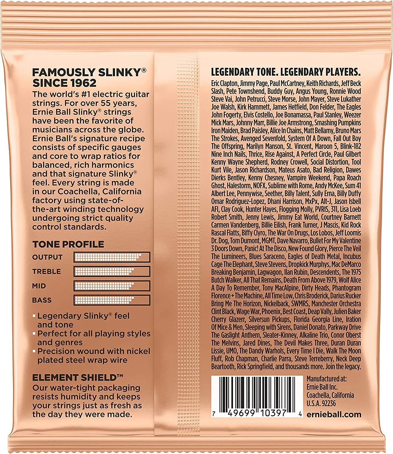 Turbo Slinkys sit neatly between the popular Regular Slinky and Hybrid Slinky strings while providing a balanced, comfortable feel across all six strings.