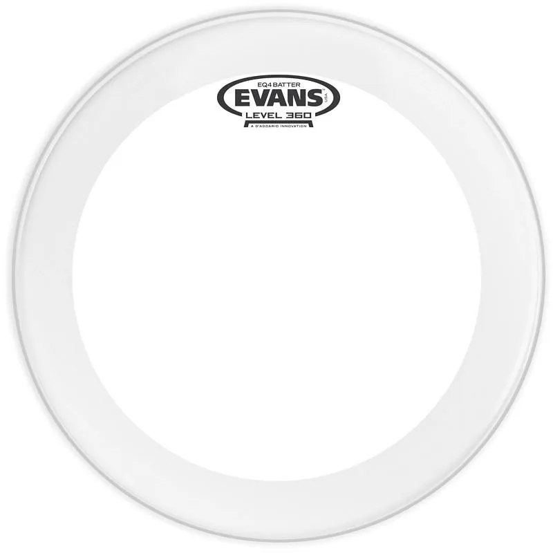 Evans EQ4 series features a single ply of 10mil film. A fixed internal overtone control focuses the tonal response of the drum.