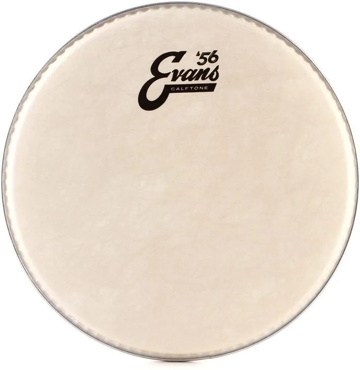 It looks like a calfskin! It sounds like a calfskin! And it feels like a calfskin! But it's not calfskin, it's Evans '56 Calftone.Manufactured in New York from advanced synthetic materials, and fitted with D'Addario's Level 360 Technology to serve up the warm, familiar sound you love with the quality and consistency a modern drummer demands.