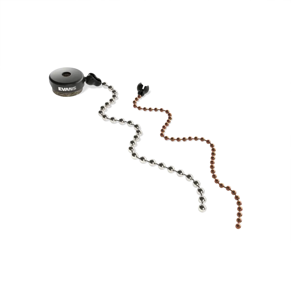 An update to the classic ProMark design, the EVANS Cymbal Sizzler provides riveted cymbal sound, without the hassle of drilling holes and inserting rivets. The new ball-joint design allows for swift application and removal of either of the two included chains.