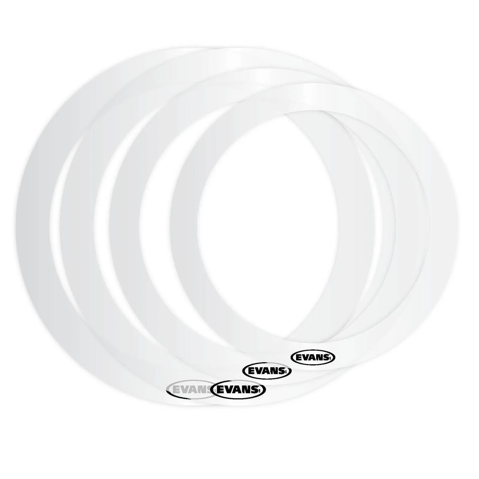 The Evans E-Ring Packs contain easy-to-use external overtone control rings that float on the surface of a drumhead to remove overtones and flattens the drumhead's sound, allowing for easier tuning. The Fusion Pack includes 10", 12", 14" tom E-Rings and a 14" snare E-Ring.