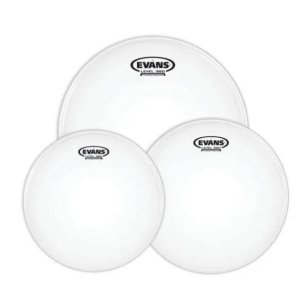Evans Standard Tom Pack (12", 13", 16") coated G2 two-ply drum heads are designed to offer a perfect blend of depth, sustain and attack while featuring extraordinary consistency and durability. Evans coated G2 series, one of the most popular drum heads on the market, features two plies of 7mil film that provide a high level of consistency and durability. The perfect blend of depth, sustain and attack makes small toms sing and floor toms growl. The coated version delivers additional warmth, focus, and depth, plus a unique translucent appearance. Evans Level 360 technology is incorporated to extend the level playing surface of the drumhead, 360 degrees around the drum. The vertically enhanced collar design guarantees even contact with the critical bearing edge of the drum shell, resulting in: ease of tuning, extended pitch range and optimum quality of sound. Evans Level 360 technology resolves the age-old dilemma of traditional synthetic heads consistently not fitting the drum shell without using considerable force.