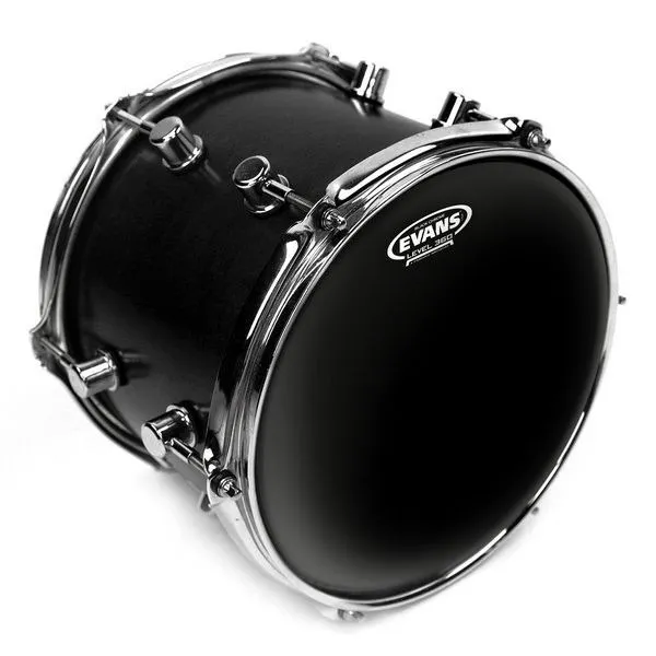 Evans Black Chrome drum heads are ideal for the Rock/Metal/Progressive drummer who hits hard, plays fast and desires a new, attractive aesthetic with a punchy tone. Featuring a two-ply construction with a ply of 7mil optically clear film over a 7.5mil black film, Evans Black Chrome provides strong durability combined with a sleek mirror-like appearance and a robust tone. The combination of opposing films (two different types and thicknesses) shortens sustain and provides an accentuated mid-to-low frequency response. Evans Level 360 technology is incorporated to extend the level playing surface of the drumhead, 360 degrees around the drum. The vertically enhanced collar design guarantees even contact with the critical bearing edge of the drum shell, resulting in: ease of tuning, extended pitch range and optimum quality of sound. Evans Level 360 technology resolves the age-old dilemma of traditional synthetic heads consistently not fitting the drum shell without using considerable force.