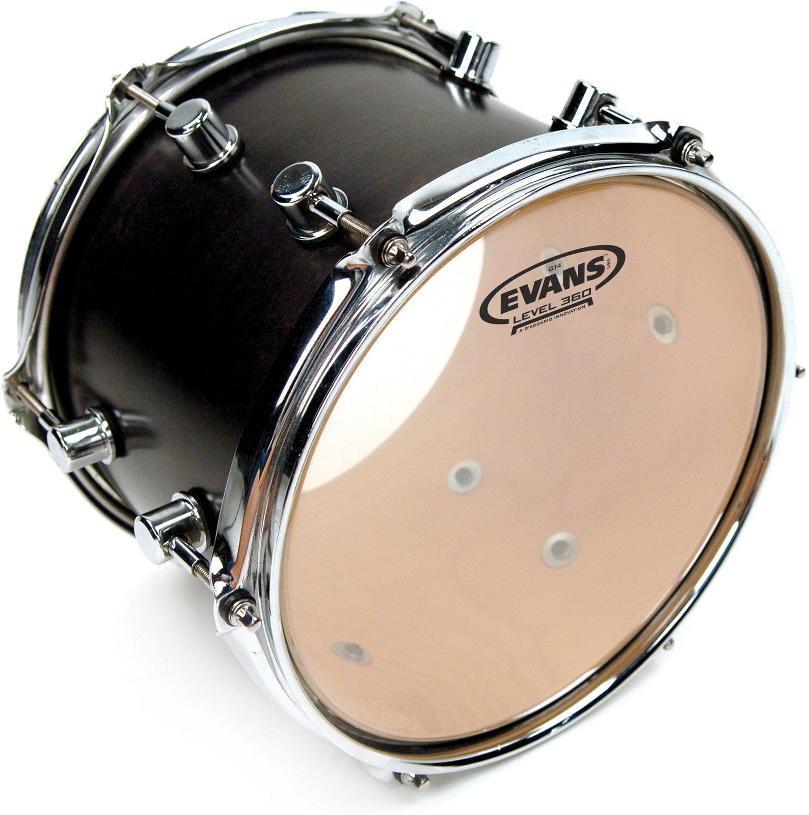 The Evans G14 series is the loudest, most durable single-ply drum head on the market. Crafted using premium quality film that is 14mil thick instead of the industry standard 10mil, the G14 delivers unprecedented durability without losing the strong dynamic response of a single-ply drumhead. Ideal for use in high-volume performance situations, the G14 can withstand heavy playing while projecting through the mix to provide a full, aggressive sound. The G14 is available in both clear and coated white versions, sizes 6 - 20 inches. Evans' proprietary white coating provides additional warmth of tone while the clear version provides a full frequency response for maximum projection.