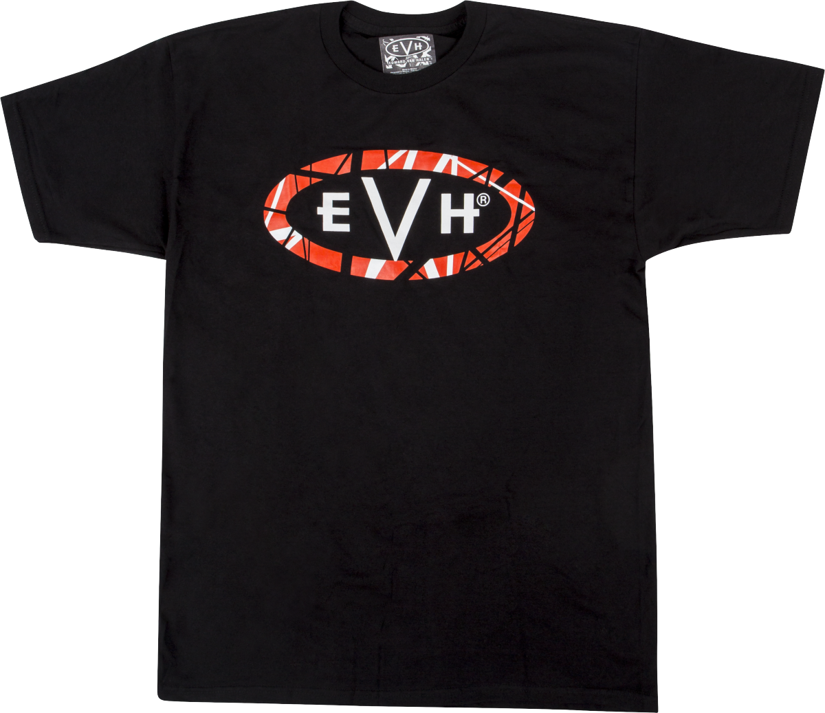 This shirt is all black with a large red, black and white EVH® logo on the front.