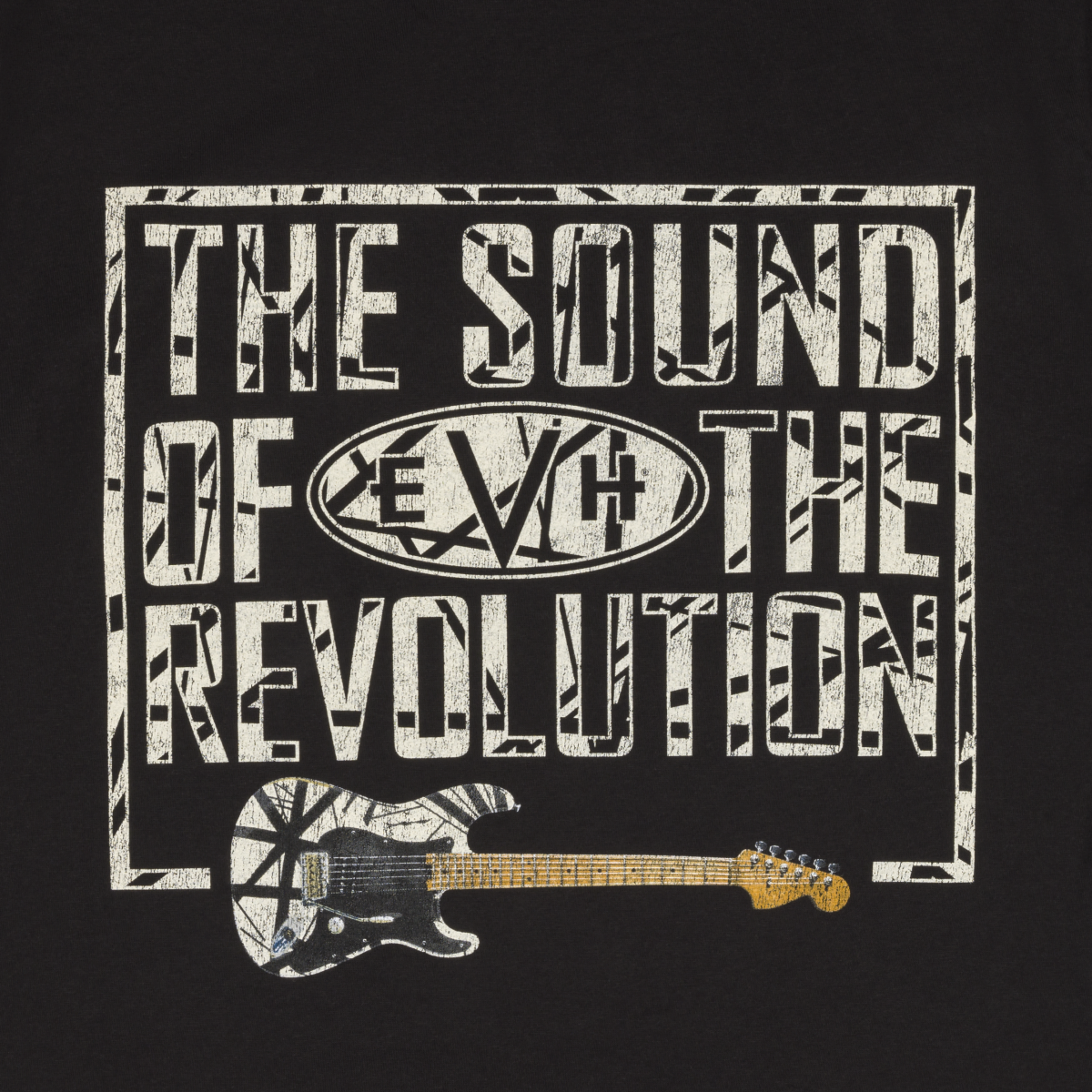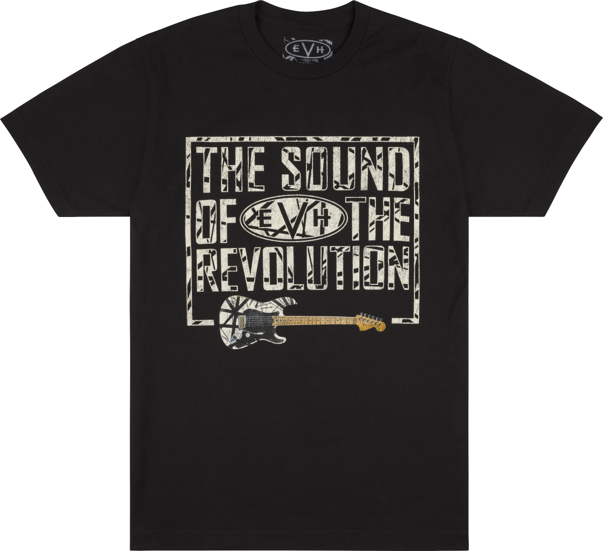 Rock the EVH® brand in style with the EVH® Revolution® T-Shirt. Featuring distressed graphics centered around the iconic striped series EVH® guitar, this soft-spun cotton tee is the perfect way to sport your favorite brand in ultimate comfort.