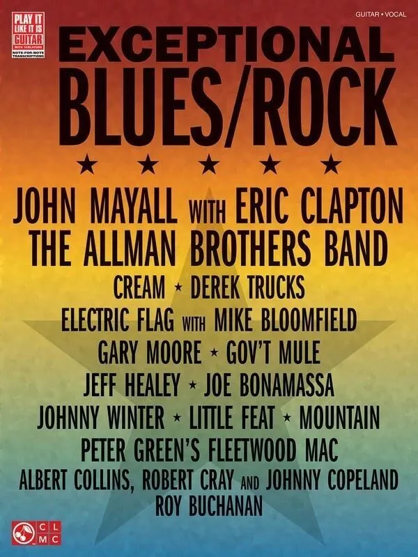 34 of the genre's best, by the Allman Brothers, Jeff Beck, Cream, Gov't Mule, Mountain, Little Feat, Joe Bonamassa and many others! Includes: Blue Sky • Confidence Man • The Green Manalishi • Have You Heard • Hell to Pay • I Ain't Superstitious • I Feel Free• Killing Floor • Let It Roll • Rock and Roll Doctor &bu ll; See the Light • Since I Met You Baby • Theme for an Imaginary Western • and more, all transcribed in notes & tab.