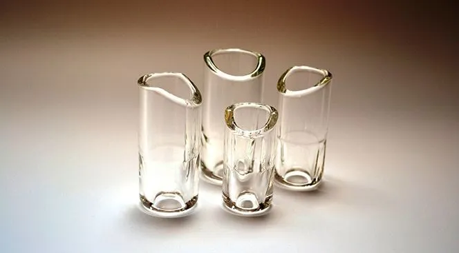 Moulded Glass Rock Slides are individually hand moulded in the USA by master lampworkers.  These have all the same features as our brass Rock Slides® with the Knuckle Cut, Finger Rest and Tapered Interior.  These fit almost exactly like their brass counterpart but are slightly longer.  The main difference being that they are much lighter & faster so you can really cook with these on an electric guitar.