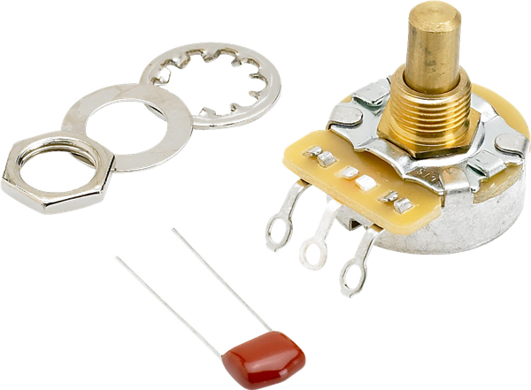 Fits most U.S.- and Mexico-made instruments requiring a 3/8" solid-shaft potentiometer. Takes set screw-mount control knob. Mounting hardware and .022mf 250V capacitor included.