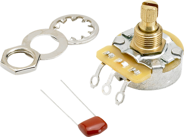 An integral part of the Delta Tone™ system on Fender American series electric guitars, this 250K "no-load" potentiometer functions as a normal tone control from 1 to 9. At 10, the tone control is removed from the circuit for increased output and overall tonal response. Fits most U.S.- and Mexico-made instruments requiring a 3/8" split-shaft potentiometer. Takes push-on control knob (no set screw). Mounting hardware and .022mf 250V capacitor included.