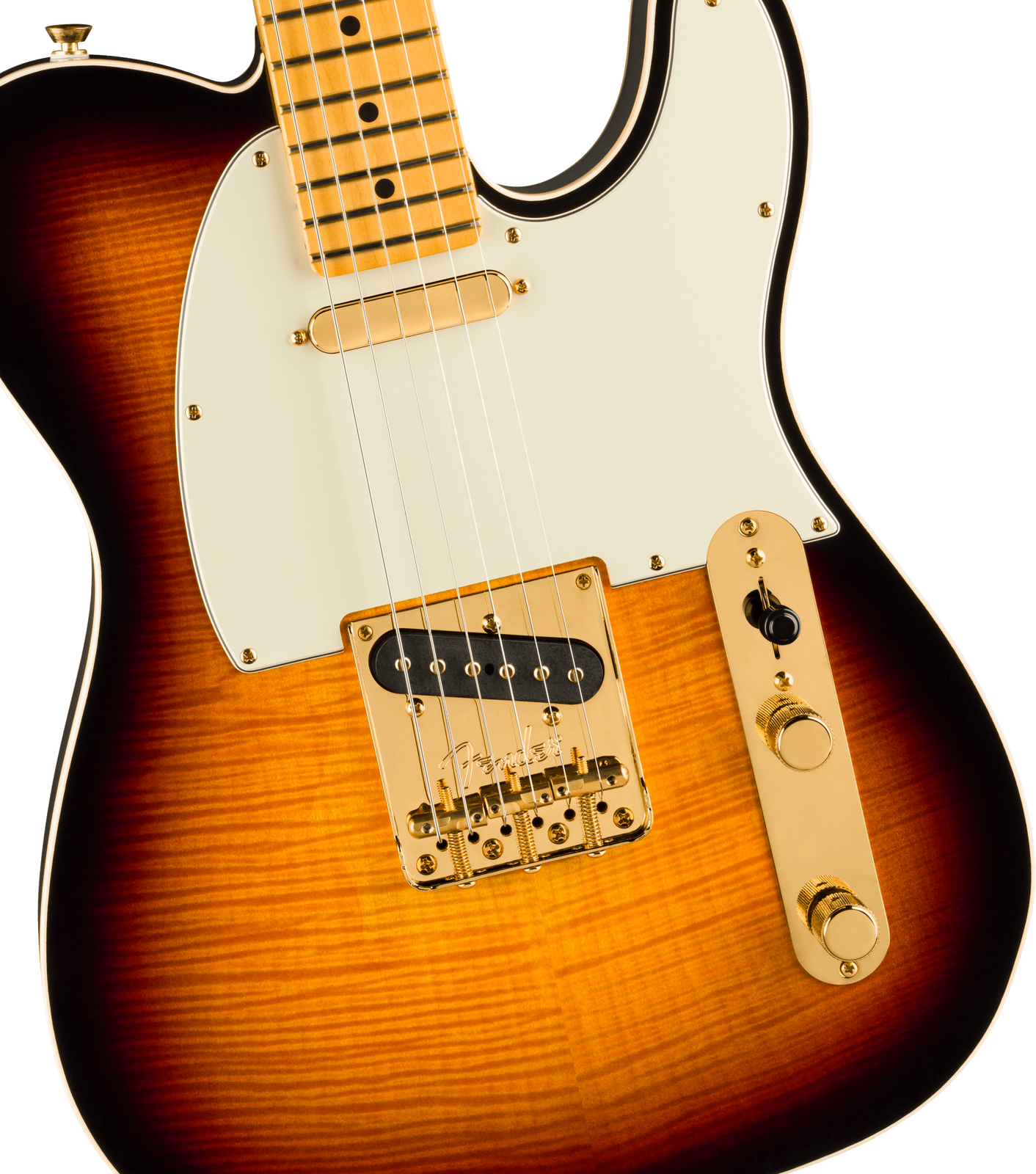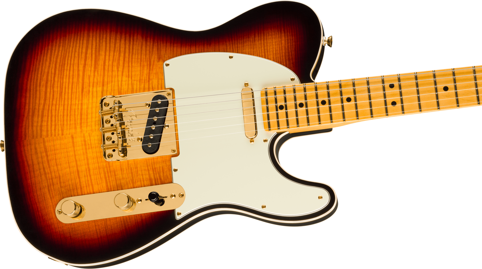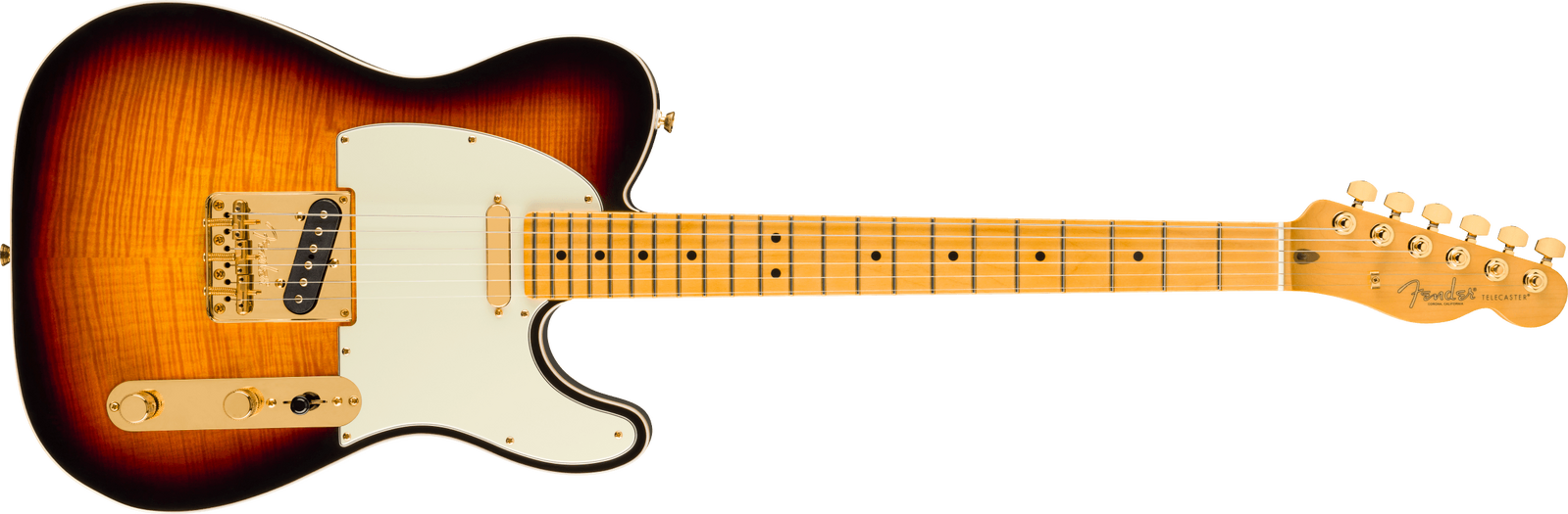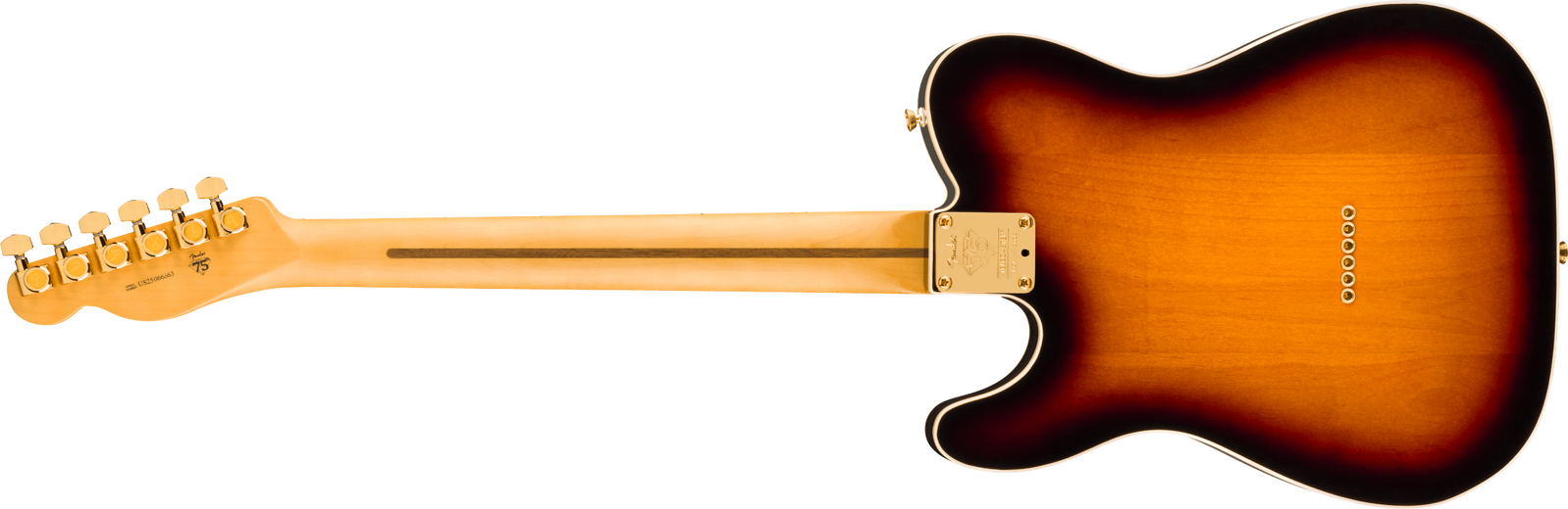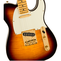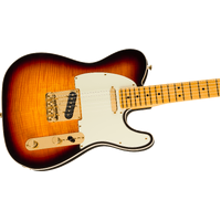 Celebrate 75 years of guitar innovation with the 75th Anniversary American Professional Telecaster. Crafted with a resonant alder body topped with a stunning flame maple top and finished in a classic 2-tone sunburst. This instrument features an elegant double bound body that radiates graceful sophistication. The Deep "C" shaped maple neck with 9.5" radius maple fingerboard and medium jumbo frets provide the smooth, fast playability that today's guitarists demand. The 75th Anniversary V-Mod pickups deliver the best of both worlds - that enchanting bridge pickup twang combined with the warm growl of the classic Tele® neck pickup. The tone push/push pot engages a wiring option that puts both pickups in series for enhanced output and unique tonal combinations. Other premium appointments include gold-plated hardware throughout, vintage-style compensated 3-Saddle bridge and locking gold tuners. This limited-edition model represents an uptown take of a classic Custom Telecaster ®, a must-have for collectors and guitar enthusiasts seeking modern performance.