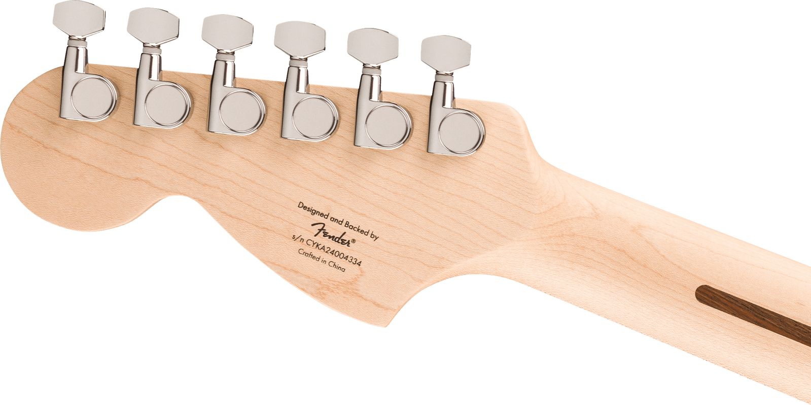 A superb gateway into the time-honored Fender® family, the Squier® Affinity Series™ Stratocaster® Junior HSS delivers legendary design and quintessential tone for today’s aspiring guitar hero. This reduced-size Strat® features several player-friendly refinements such as a scaled-down lightweight body, a slim and comfortable “C”-shaped neck with a short 24“ scale length, a 2-point tremolo bridge for superior tremolo action and sealed die-cast tuning machines with split shafts for smooth, accurate tuning and easy restringing. Loaded with a Squier humbucking bridge pickup and single-coil neck and middle pickups for genre-defying sonic variety, this model is ready to accompany any player at any stage.