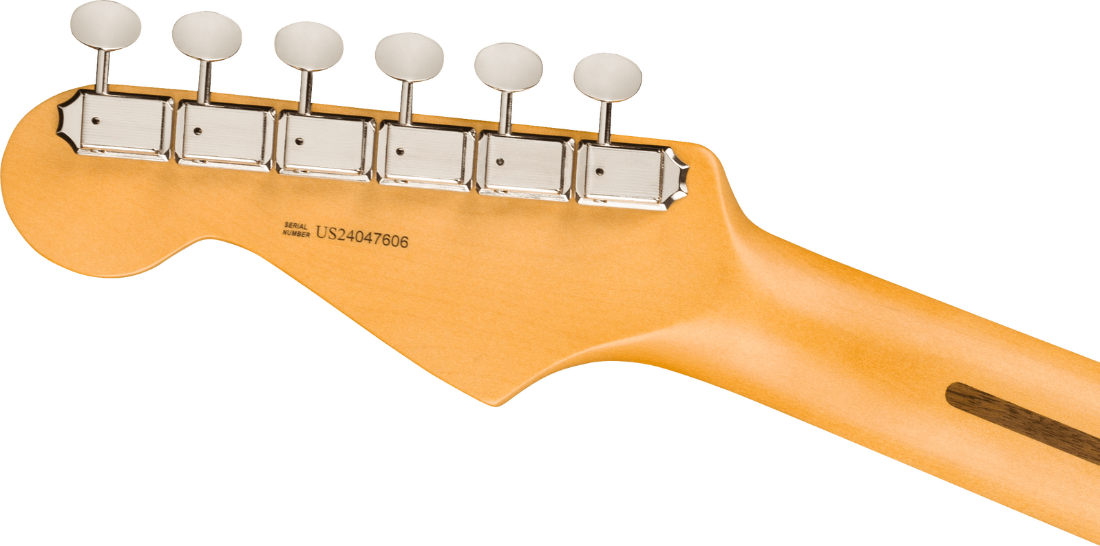 Under the hood, vintage-inspired Coastline™ ’57 Stratocaster® pickups deliver depth, punch and sparkle while the sleek Modern "C" neck provides exceptional comfort and playability. Fender Staggered ClassicGear™ tuners provide classic looks and precise tuning stability. Boasting custom-faded vintage and signature Fender® finishes, this professional-grade instrument looks as good as it sounds.