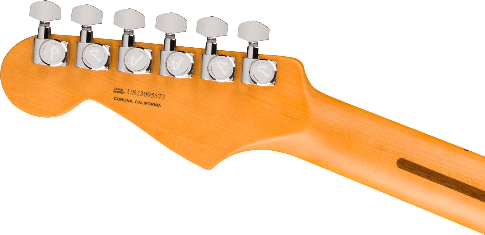 Under the hood, a trio of Ultra II Noiseless™ Vintage Strat® pickups deliver everything from sweet crystalline cleans to searing leads, all without a hint of hum. Our patented S-1™ switch cleverly unlocks additional pickup configurations for even more tonal variety. Additional road-ready features include 2-Point American Ultra synchronized tremolo with pop-in arm, polished stainless steel block saddles, cold rolled steel block, deluxe locking tuners, soft-touch knobs and 1-ply anodized aluminum pickguard.