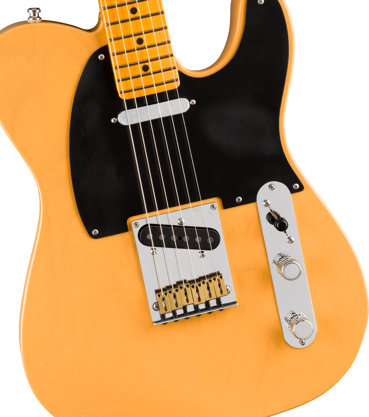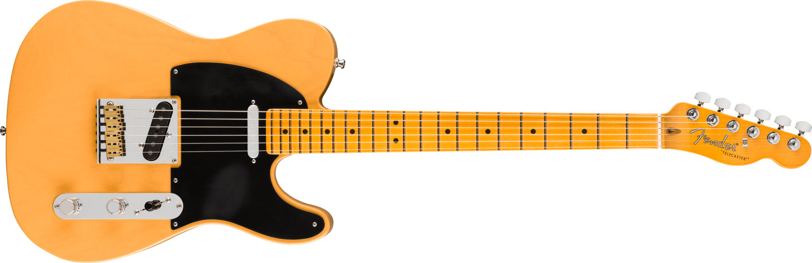 Under the hood, Pure Vintage '51 Tele® pickups deliver classic Fender tones, from sparkling cleans to rich, expressive leads. Performance hardware includes a precision-engineered 6-saddle string-through-body bridge with brass block saddles and deluxe locking short post tuners for quick string changes and superior tuning stability.