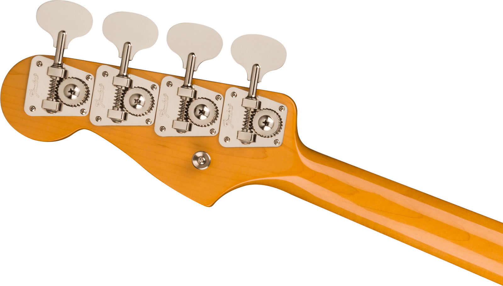 The American Vintage II 1966 Jazz Bass features a comfortable "U" shape hard rock maple neck, and it plays like a dream with a 7.25" radius round-lam rosewood fingerboard and vintage tall frets. Characteristic of production in 1966, this J-Bass® is offered with white neck binding, pearl dots, two volume controls with master tone, matching painted headstock and 4-ply tortoiseshell pickguard. The 4-saddle bridge with threaded saddles, vintage-style "lollipop" tuners and Pure Vintage '66 Jazz Bass pickups deliver classic thump and style.