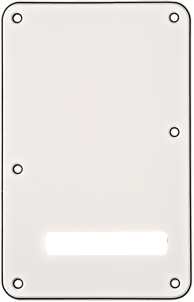 Modern single-ply Stratocaster tremolo backplate with single large string slot.