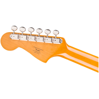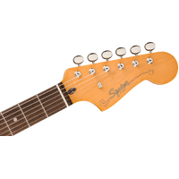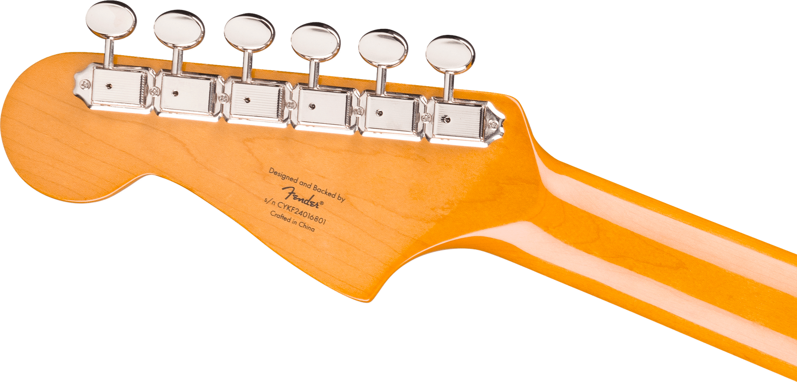 The Classic Vibe '60s Jazzmaster® is a faithful and striking homage to the iconic Fender favorite, producing undeniable Jazzmaster tone courtesy of its dual Fender Designed™ alnico single-coil pickups. Player-friendly features include a slim, comfortable "C"-shaped neck profile with an easy-playing 9.5"-radius fingerboard and narrow-tall frets, a vintage-style tremolo system for expressive string bending effects, and a floating bridge with barrel saddles for solid string stability. This throwback Squier model also features 1960s-inspired headstock markings, rich-looking nickel-plated hardware and a slick vintage-tint gloss neck finish for an old-school vibe.