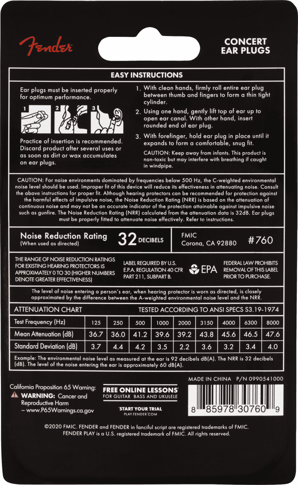 Fender Concert Earplugs 10 Pairs